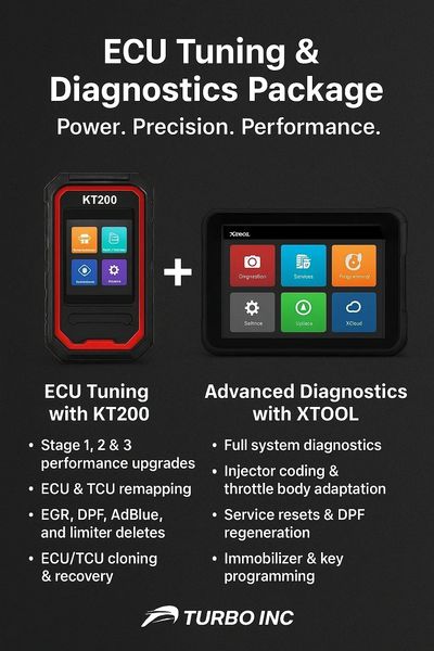 At Turbo Inc, we go beyond turbocharging — we deliver complete engine optimization. With our cutting-edge KT200 ECU programmer and XTOOL diagnostic systems, we offer a full-service solution that ensures your vehicle performs at its best. here to help.